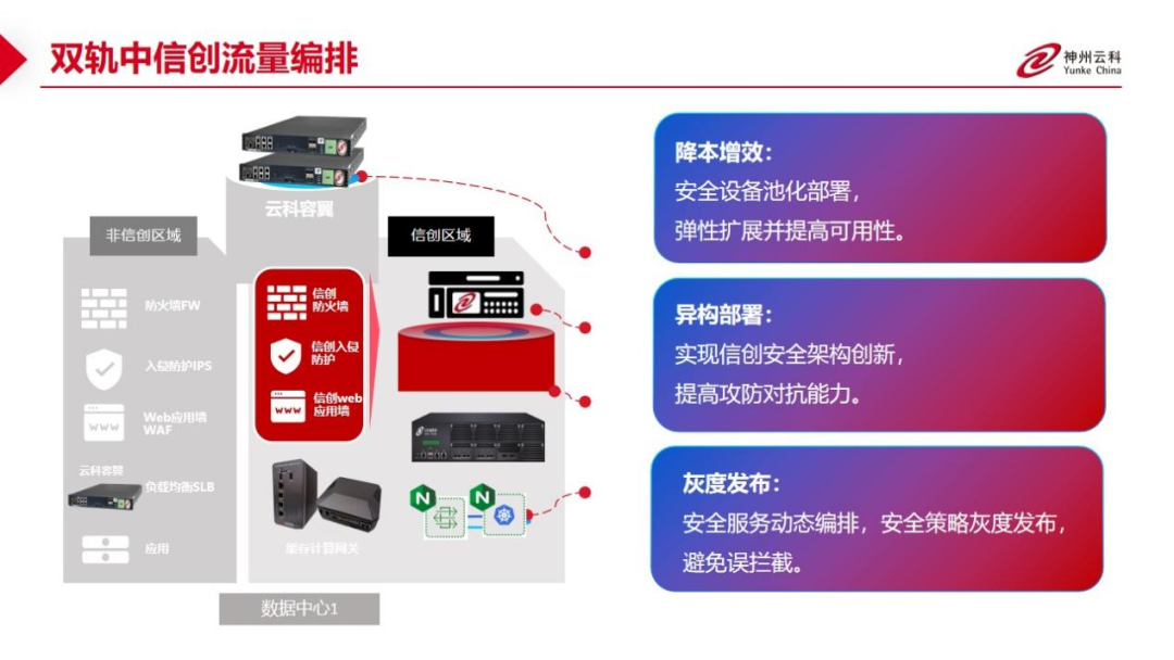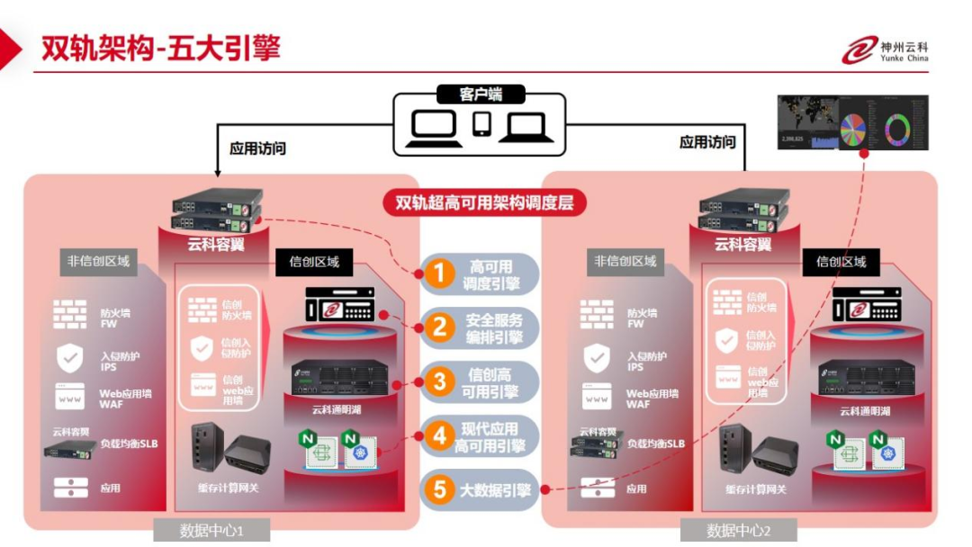 为了更好的适配双轨超高可用架构,云科应用交付控制器容翼系列产品和云科通明湖信创系列产品一方面可以保证信创产品的稳定性,弥合性能与企业应用要求的差距;一方面,当业务面对合规、风险和创新的挑战时,实现云原生可信开源与跨域协同。