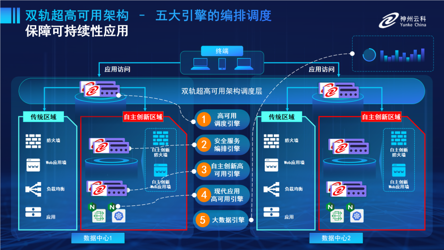 为满足数据中心双轨建设信创区和非信创区跨域协同,云科通过5大引擎实现双区无缝切换,跨域协同。