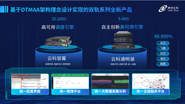 为了更好的适配双轨超高可用架构,云科研发了容翼系列和云科通明湖信创系列两大应用交付控制器产品。